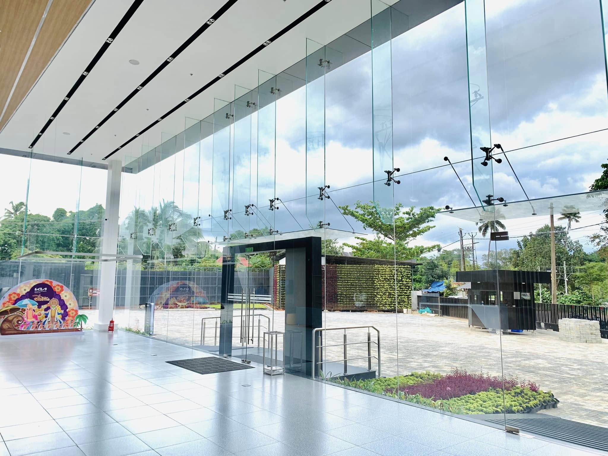The Incheon Kia Thodupuzha project reflects a seamless blend of modern automotive architecture and precision glass craftsmanship. The façade was enhanced using high-quality ACP panel design in Kerala, carefully selected to complement the brand’s bold identity while ensuring long-term durability. Precision-engineered ACP works in Kerala were executed to deliver clean lines, structural strength, and a refined exterior presence.