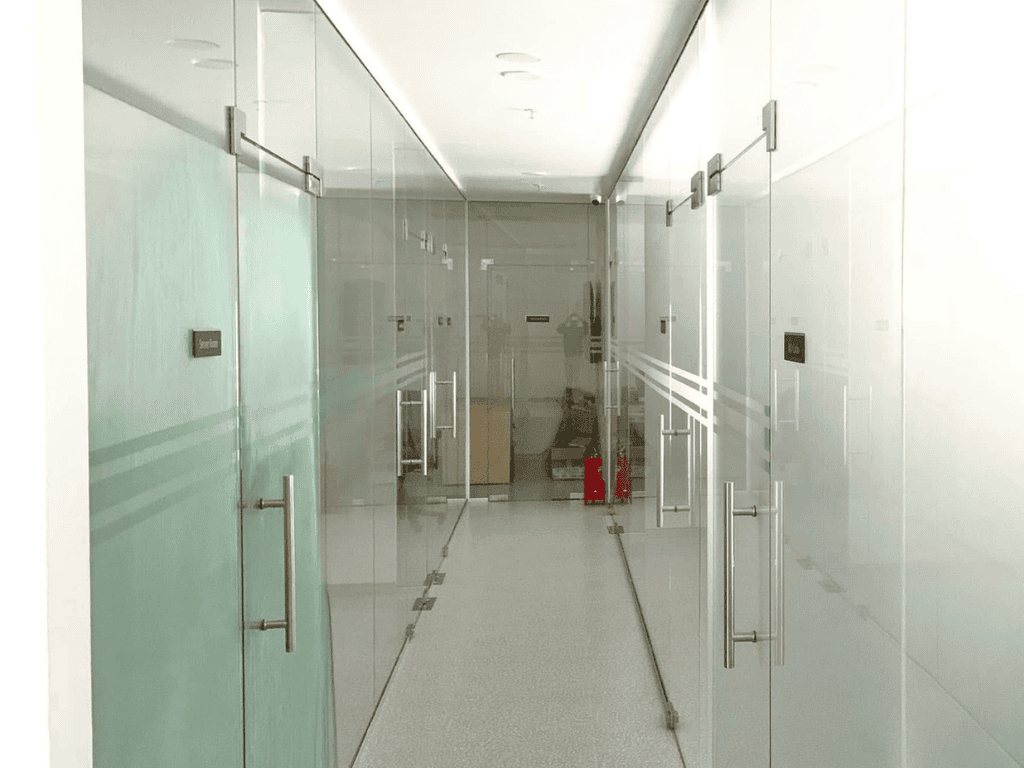 The entrance experience was completed with premium frameless glass door work in Kerala, offering smooth functionality and a sleek, contemporary finish. Internally and externally, robust fixed glass works were installed to maintain visual continuity, while precision-crafted stair glass handrail works in Kerala ensured safety without compromising elegance. The glass handrails were designed with attention to ergonomics and aesthetics, reflecting the finesse expected from experienced glass handrails designers Kochi and glass handrails designers Thrissur.