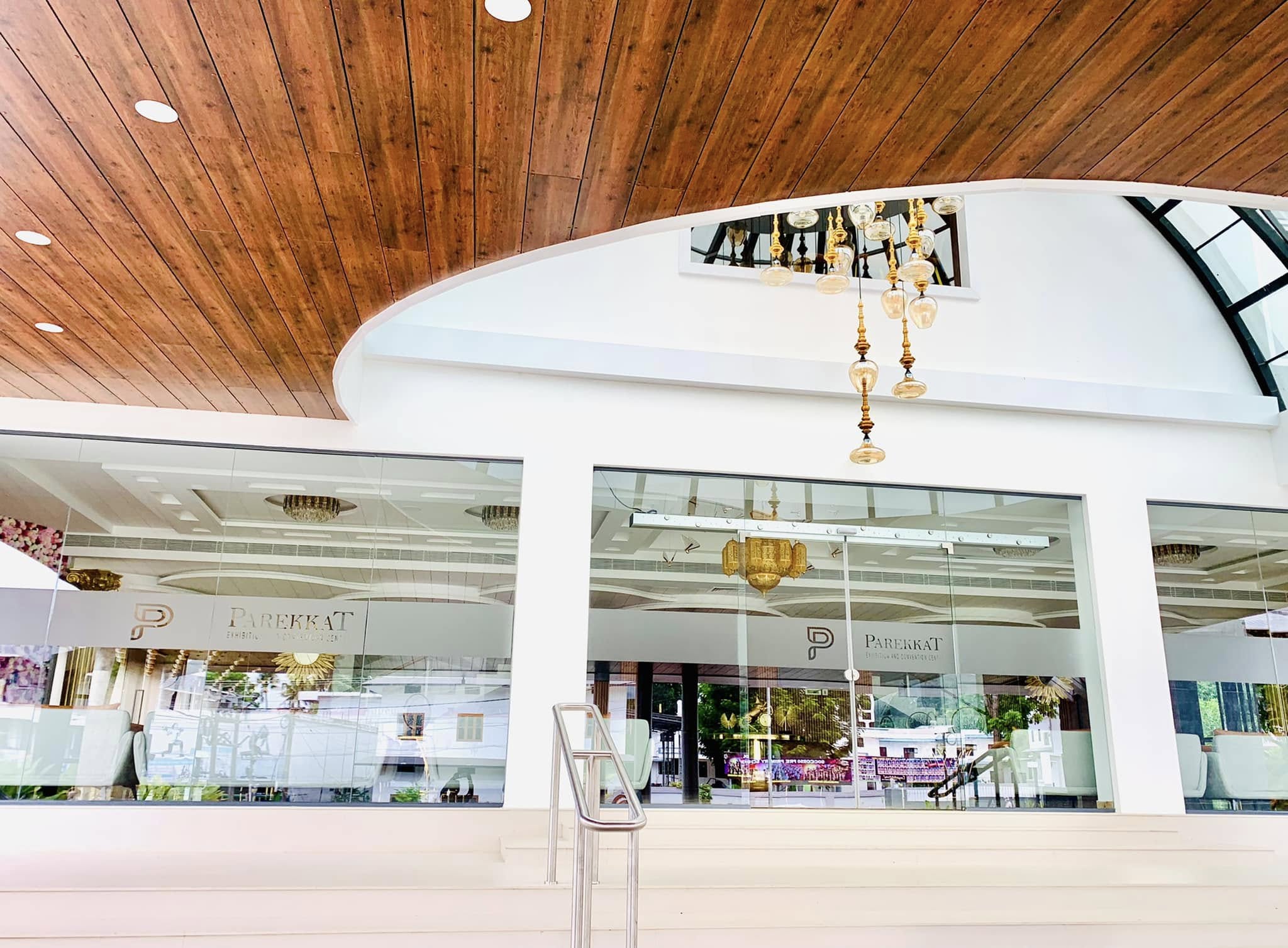 The Parekkat Convention Centre in Mala is a showcase of Green Interio Fusion’s expertise in glass design works Kerala, combining functionality with high-end aesthetics. For this project, our team undertook a comprehensive range of installations, including sleek curtain walls that enhance natural lighting while defining the building’s contemporary character. Precision-engineered fixed glass panels were incorporated to maintain an unobstructed view and maximize transparency, seamlessly blending interiors with exteriors.