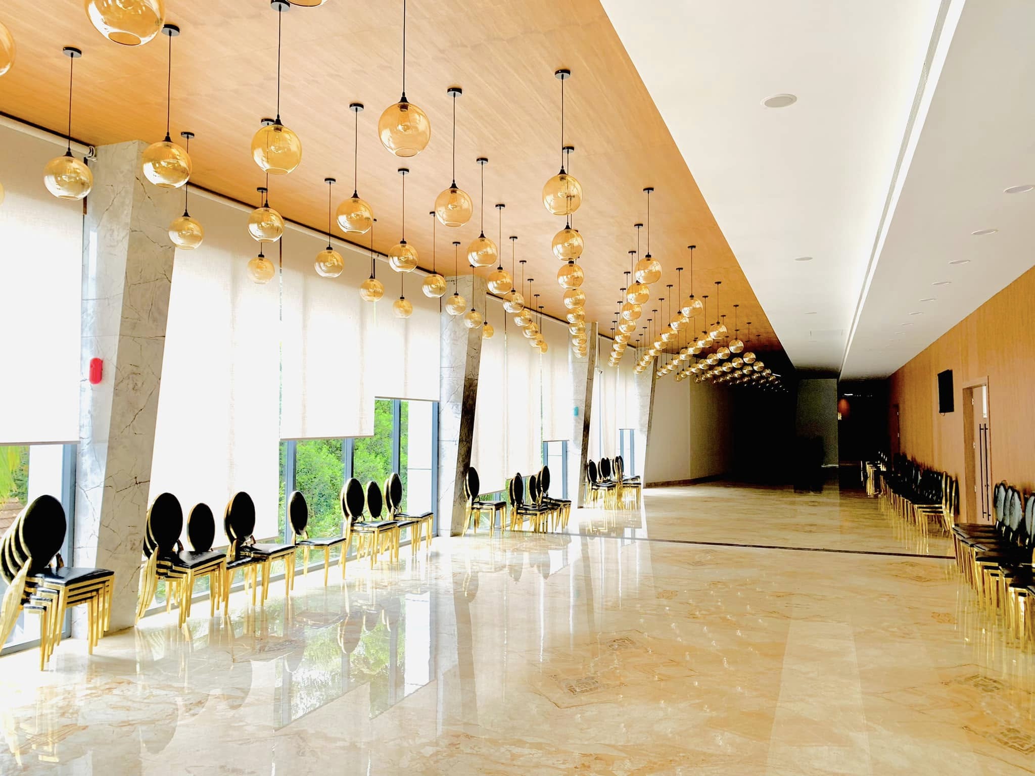 Every detail—from the polished wooden railings to the robust aluminium windows and doors—has been thoughtfully designed to contribute to a cohesive and striking architectural experience. The automated doors, louverwork, and MS-fabricated elements ensure smooth operations, durability, and long-term reliability, making the convention centre not only beautiful but highly practical.