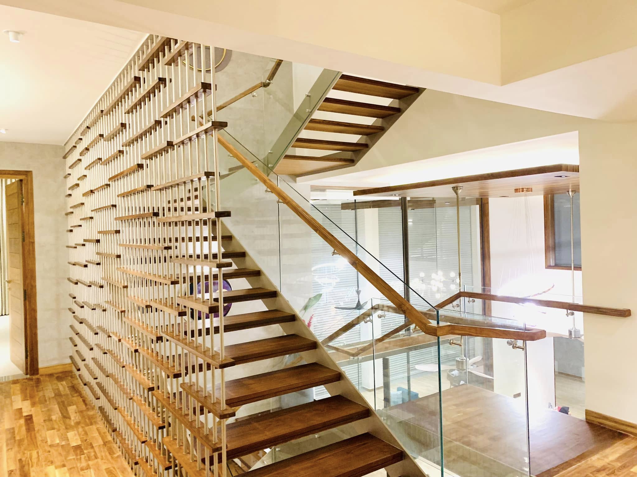 • Elegant glass and metal railing systems for premium interiors